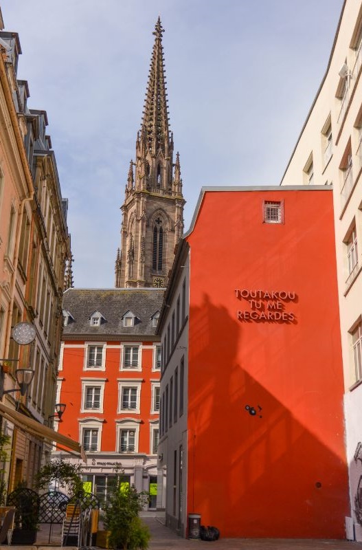 The Place de la Réunion is the real heart of Mulhouse… And I don’t think I’ll ever tire of its beautiful colorful facades! Here you can discover the Saint Etienne Temple, the tallest Protestant temple in France, as well as the former town hall, which is all dressed in pink. It is decorated with superb trompe-l’œil frescoes and dates back to the 16th century. Yes, street art is nothing new in Mulhouse!