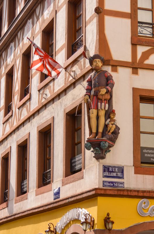 Just opposite, among the narrow, colorful houses, the Mieg House also dates from the same period. Its white stones are also trompe-l’oeil!